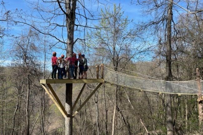 Come and experience a family friendly Costa Rican style Zipline Canopy Tour here in Eureka Springs, Arkansas! We are Eureka Springs' newest, nearest, largest and most exciting Zipline Canopy Tour! 11 amazing zipline cables and one swinging bridge! We also have a Goliath 1600-square-foot Sky Deck and observation trails to observe your family and friends! Eureka Springs Zipline is 2.5 miles south on Highway 23, only 3 minutes from downtown Eureka Springs, Arkansas. Zippers will soar through the air on cables ranging from 500 to 2000 feet long over vast gorges and hardwoods with the best views in the Ozarks. We have 11 cables, one after another, as you wind through the forest in the air between suspended platforms. 11 cables only $89 per person!